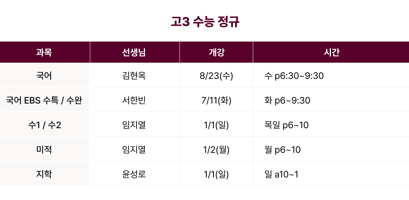 수집항목 : 이름, 휴대폰 번호, 학교, 학년, 계열