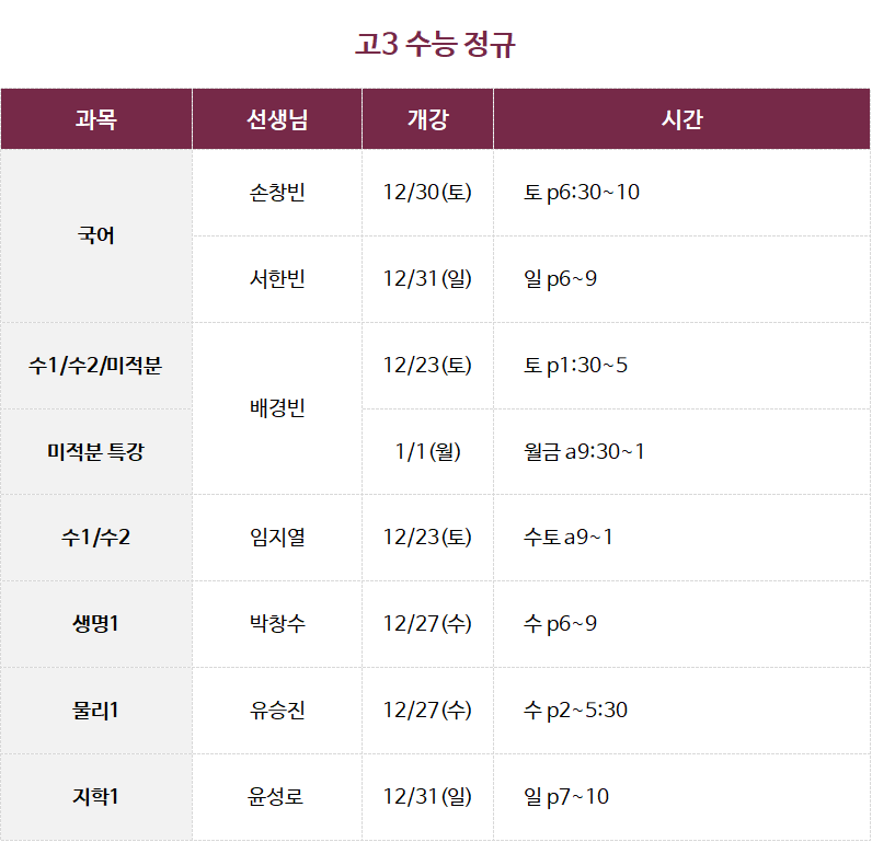 2024 송림 예비고3 겨울방학 시간표