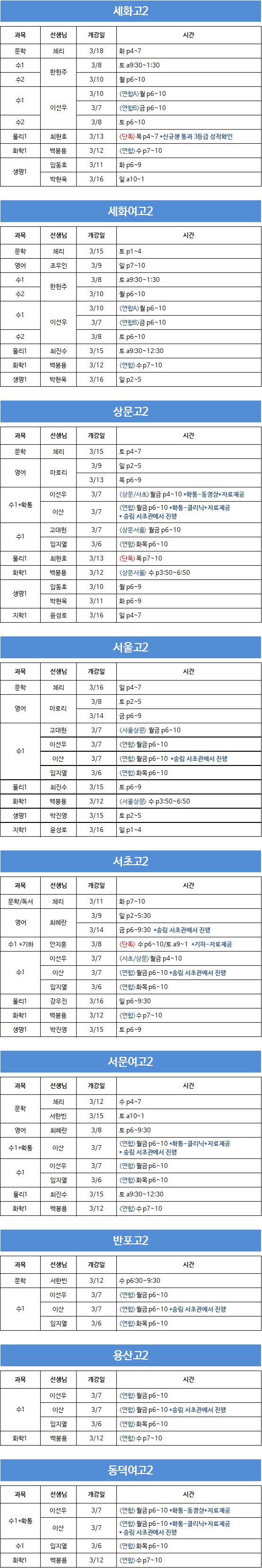 학생명 / 학교 / 강좌명