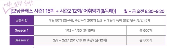 【모닝클래스 시즌1(15회) + 시즌2(12회) / 어휘암기(&독해)】