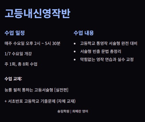 현) 송림학원 상문고, 서울고 생명과학 내신반 진행