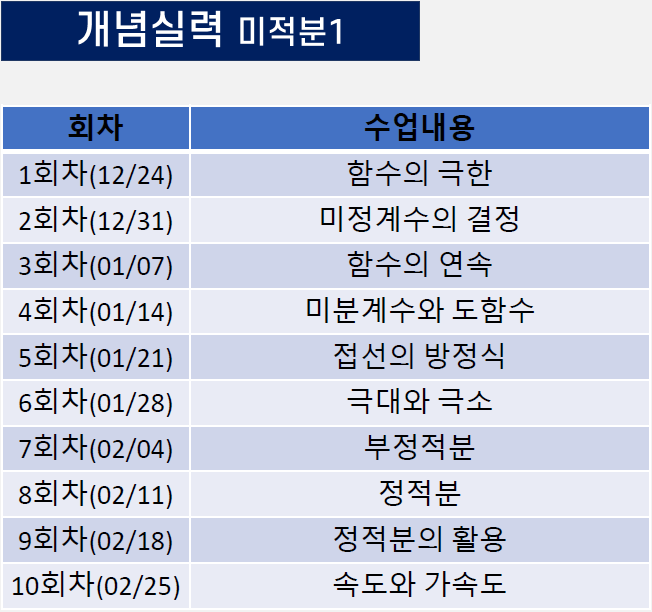 월수금 a9:30~5 미적분1 12회+미적분2 9회